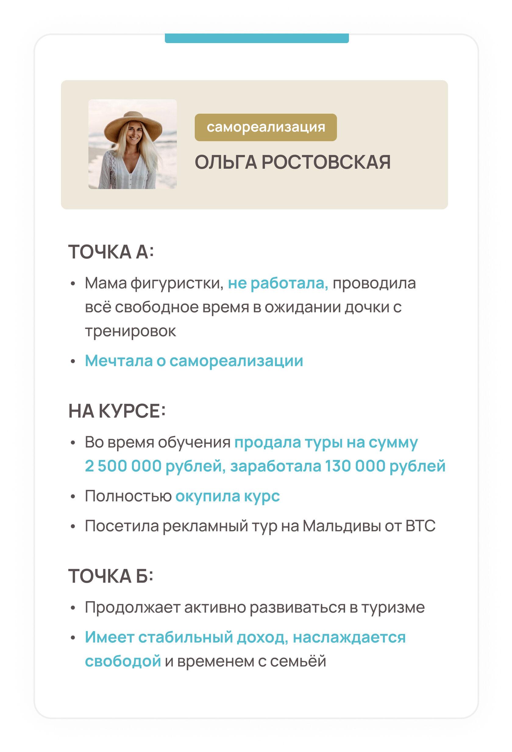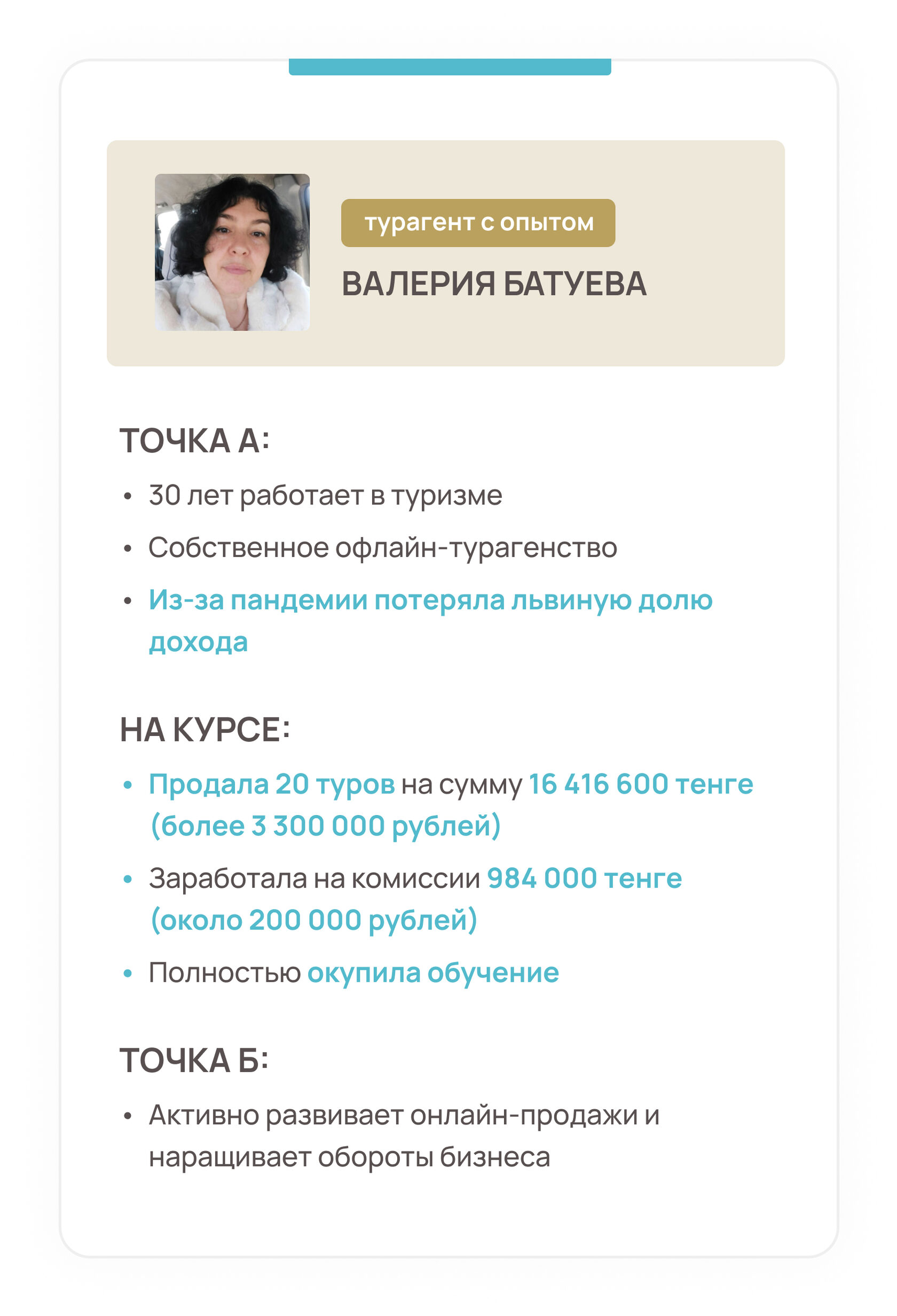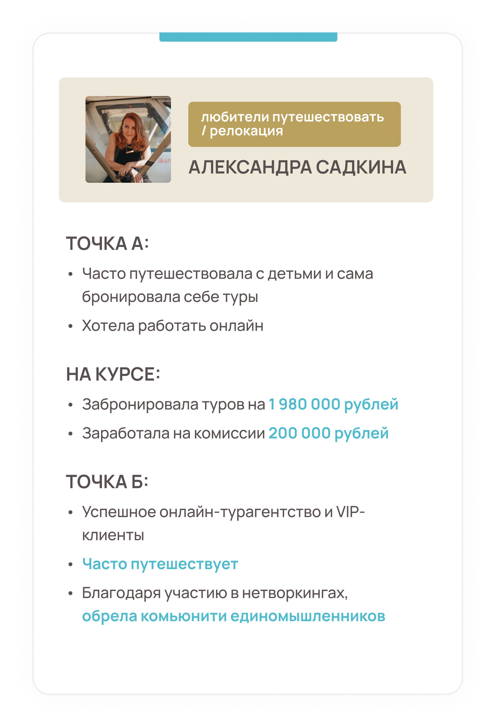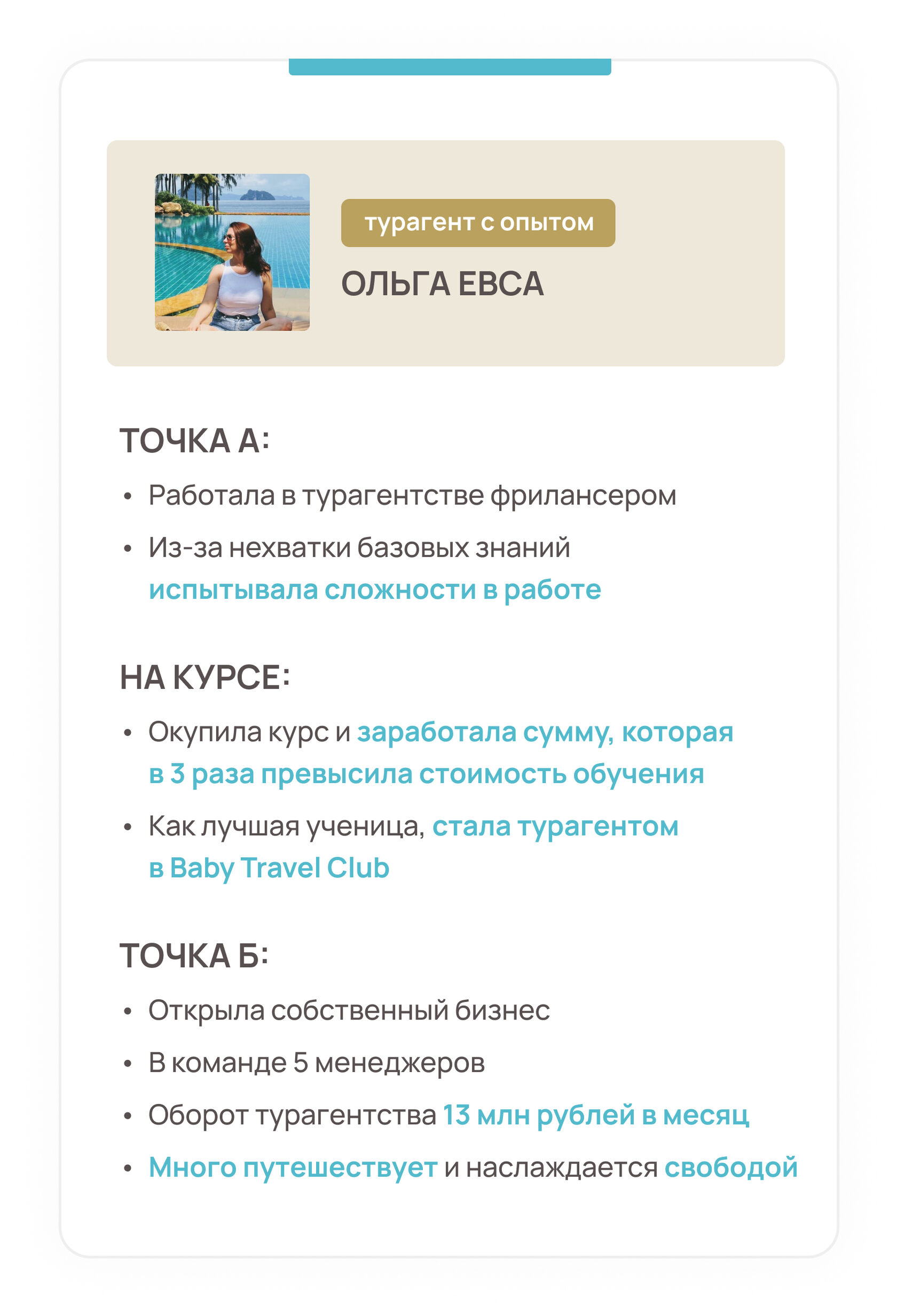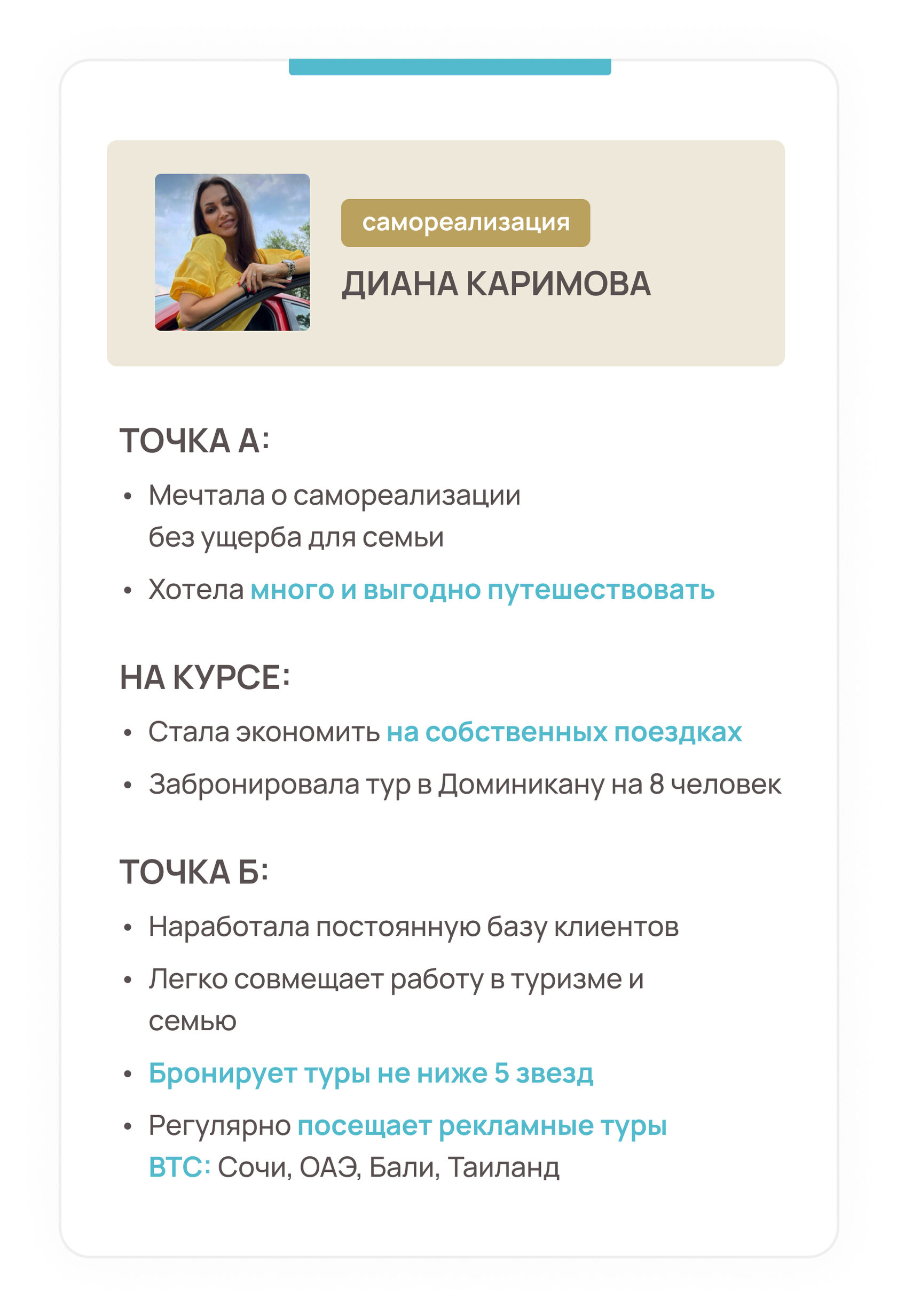 Эксклюзивные условия для учеников курса от партнеров, дающие экономию или повышенные комиссии (сервисов для создания подборок, организации трансферов, оформления страховок)