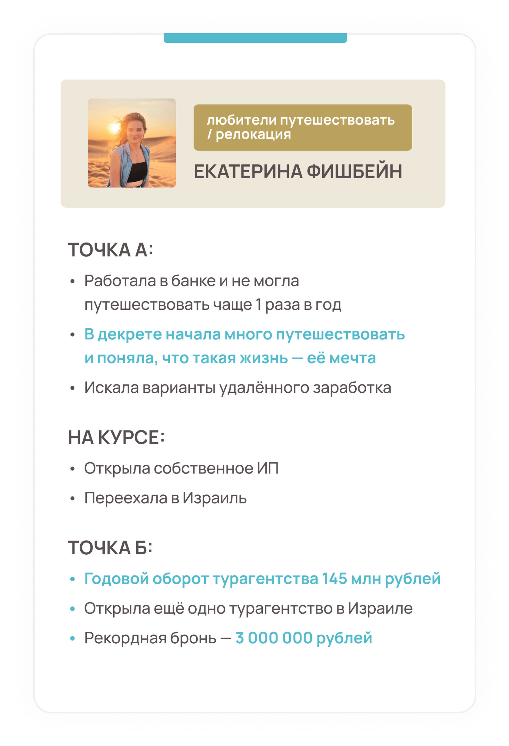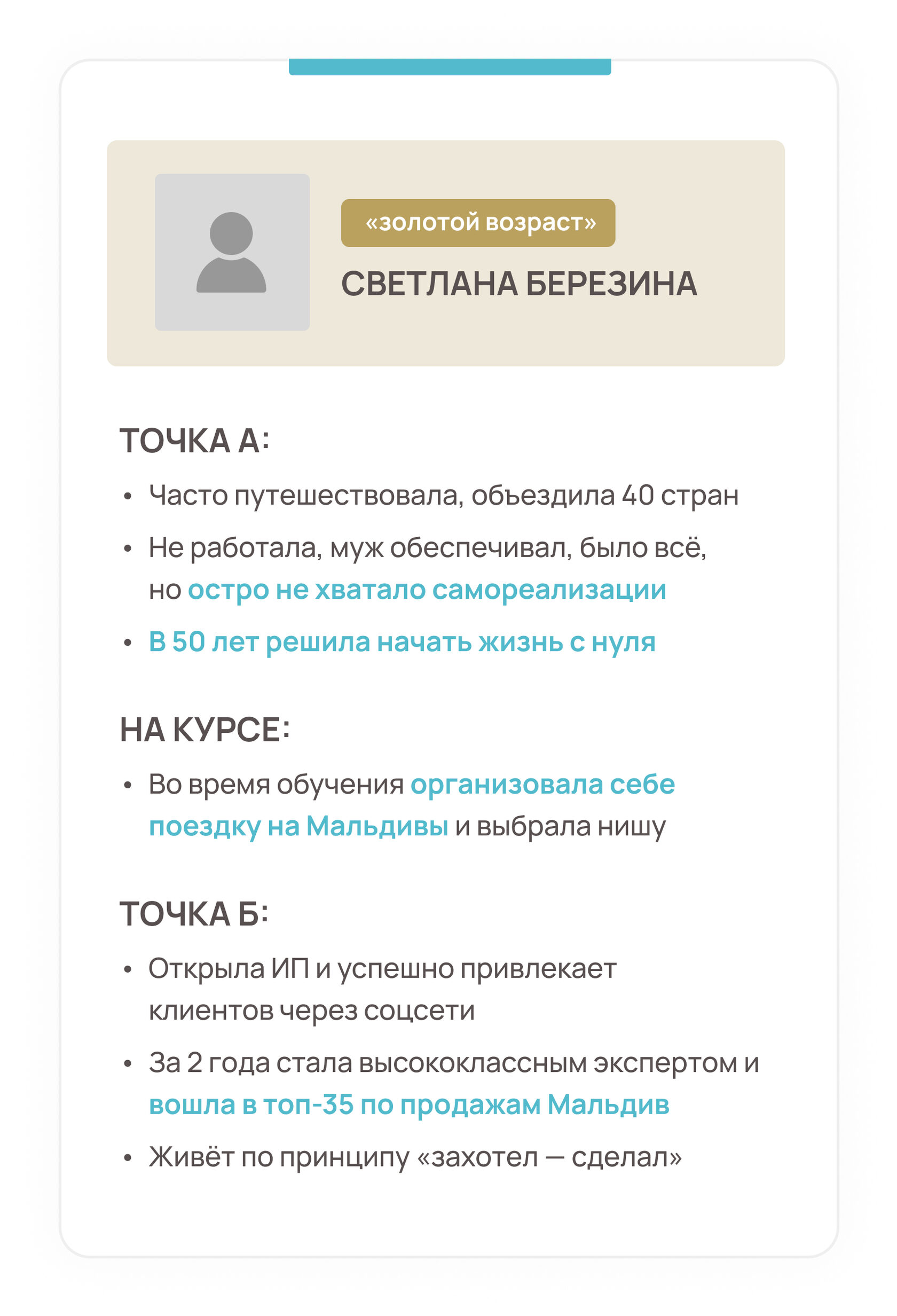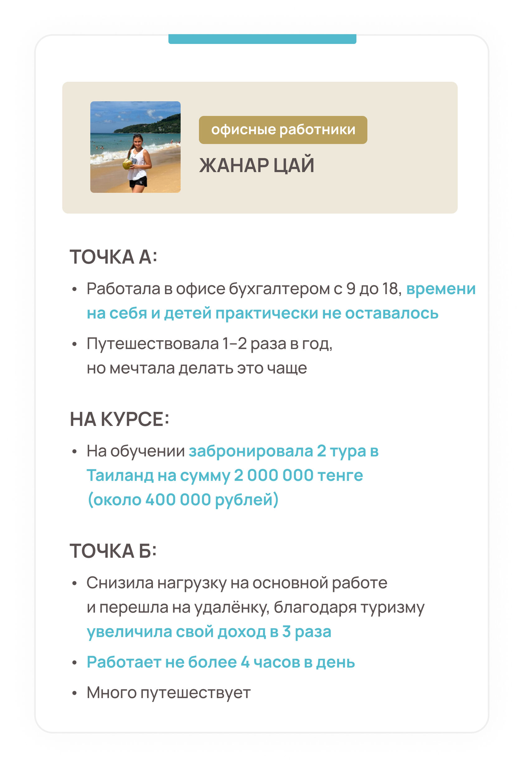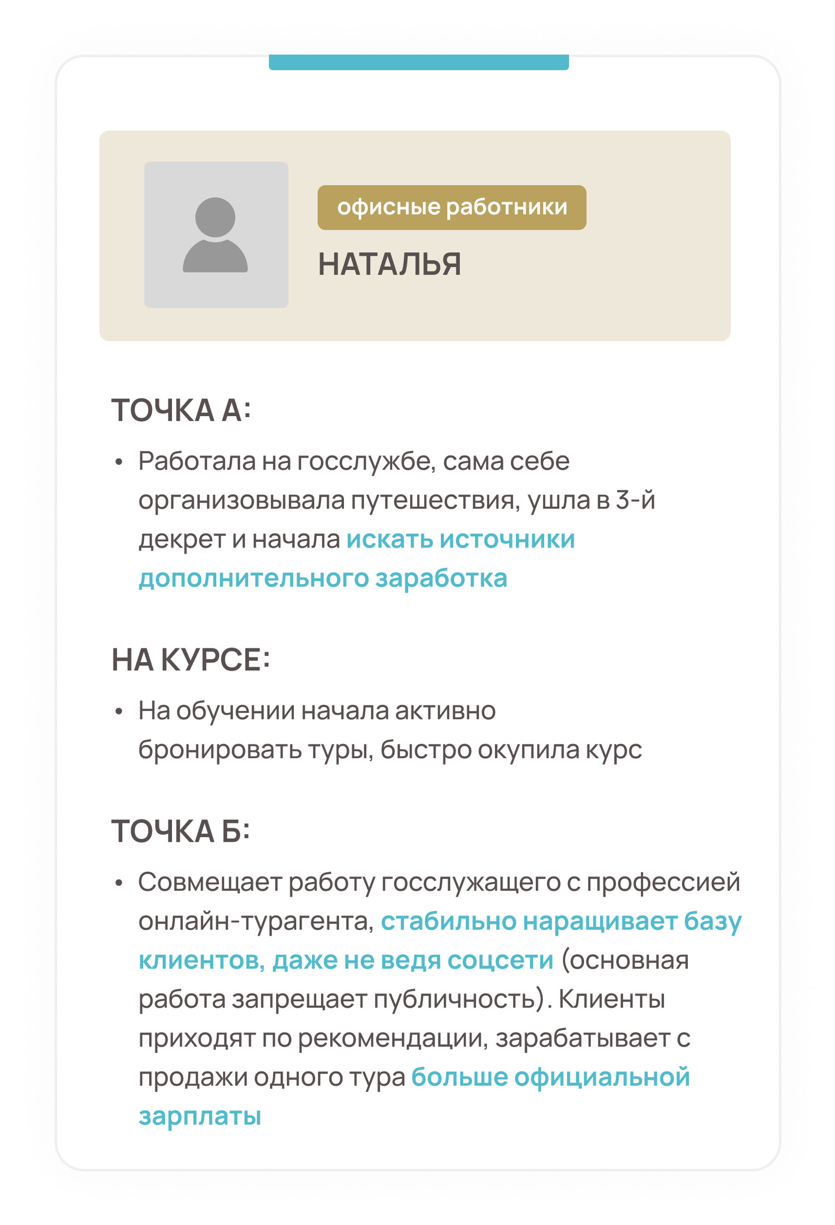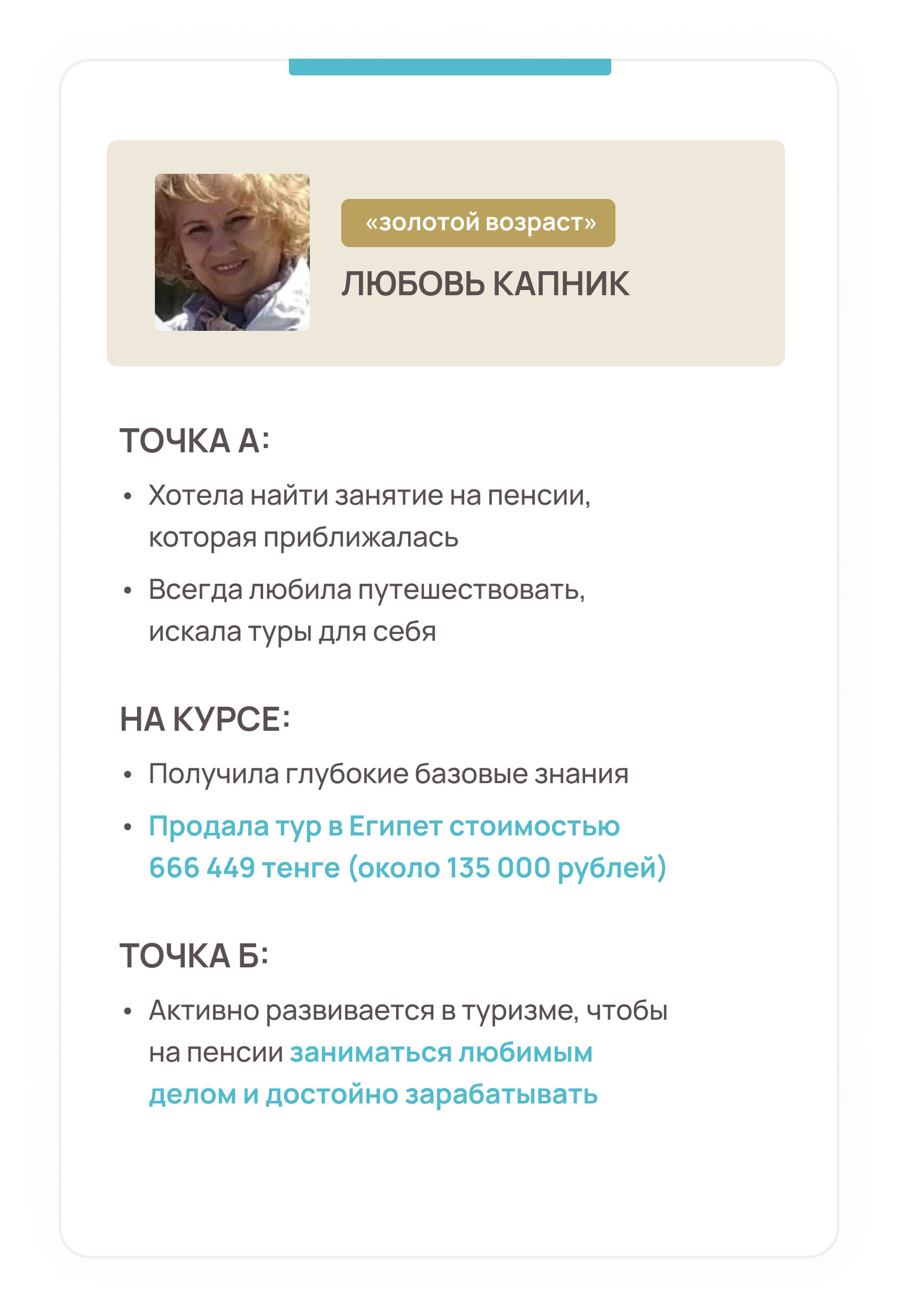 Эксклюзивные условия для учеников курса от партнеров, дающие экономию или повышенные комиссии (сервисов для создания подборок, организации трансферов, оформления страховок)
